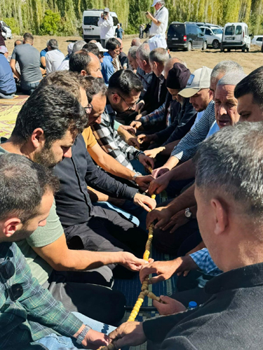 Belirlenen günde bulğur pilavı üzerine et ve çorba verilir. Hocalar, akrabalar, komşular, köylerden insanlar davet edilir. Çoğu bu gün bana yarın sanayı kendi akıbetinden dolayı katılır.